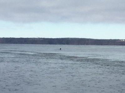 We observed four individual Bald Eagles flying over and hunting the open water created by the ferry crossing, the narrows at Glenora and most of the Bay of Quinte was ice covered.