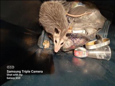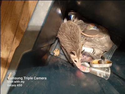 Last night I heard a noise coming from the porch and I found this guy in the recycling bin searching for food (I'd left some empty tins of cat food).