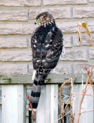 I was looking out the kitchen window and saw the hawk sitting on the fence.