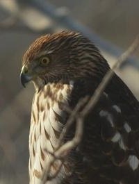 Allene from Kitchener said ... I saw a Cooper's Hawk in the birch tree in my backyard in Forest Heights in Kitchener, at 3:45pm on February 7th. It has been sitting in the tree for several minutes. We have a small creek and school field behind our house.