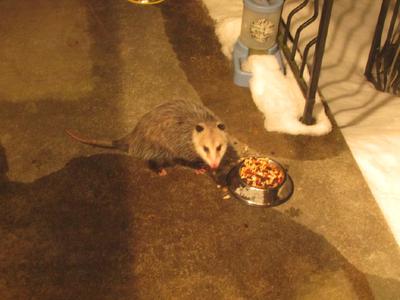 It turns out we had a Possum visiting the stale trail mix I had put out earlier in the day for birds and squirrels.