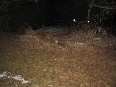 Our 2 mini daschunds were barking outside tonight and when we went out to investigate it was a large Possum.