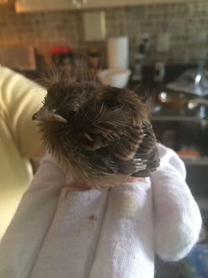 Peter G sent us these pictures of a little lost chick he found in his yard.