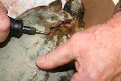 We dremelled the fractures down, washed them with soap and water, rinsed with rubbing alcohol and dried the edges with a cool hair dryer.
