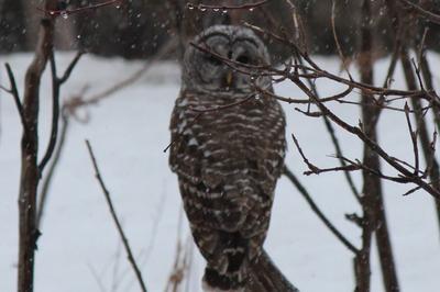 Yesterday while walking around my property in Pine Orchard, Whitchurch - Stouffville Ontario, I observed an owl which I believe is a Great Grey Owl.