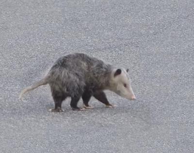 One of our readers said ... I just saw a second possum at 11:00 pm in my front garden. This one was considerably smaller with a white face & dark body. The first one tonight was here at 10:15 pm. Perhaps the first one put out a msg advertising the buffet I had. I wonder how many more there are in the ravine in my backyard. Even though this is a populated townhouse development my backyard ravine is well grown with vegetation & is totally fenced in but there are spaces where they can get under the fence. Along with the multitude of bird varieties they will join the families of raccoons, skunks & rabbits that visit my front buffet offering.
