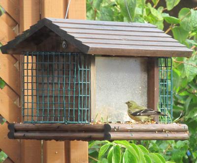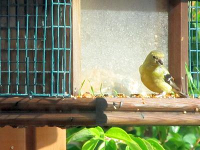 The males are such a beautiful golden colour during the summer months, but become a dull olive colour in the fall, so you may not notice them as much, but they are still around.