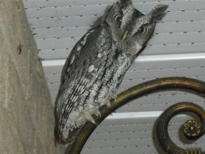 Woke up this morning and while letting the cats out the front door, lo and behold sitting on the lamp fixture was this tiny owl.