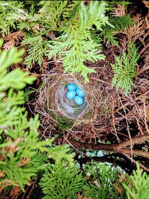 One of our readers said ... about 7:00 am I was just laying around playing on my iPad and then I heard several crow sounds and robin sounds. I saw a gigantic crow near the birds nest, I simply ignored it but soon got worried and searched up "Do crows eat robins eggs?" And they do. I asked my mom to check the nest and she said it was empty. I saw eggshells of where the crow pecked, and immediately knew the crow ate the egg. I even saw crows around my trampoline like they were guarding it a few days ago. I didn’t research crows and now there’s an abandoned nest in my backyard. The robin is still there, but there were only a few robins that are tiny that survived. I wish I could’ve scared the crow away, after what happened I was heartbroken like all the other comments were. I heard the robin screeching and I didn’t do anything. I must’ve saw the crow eat the egg, I wish I could’ve stopped it. We’re going to remove the nest after 2-4 days after. I can still see the robins flying around, but not near the nest anymore. I recently saw the mother near the nest, looking at the eggshells. But flew off to another backyard.