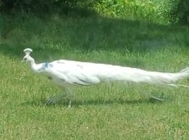I heard an unusual bird call and went to the window only to see this albino peacock.