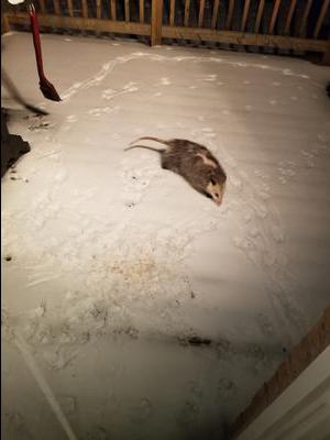 Thank you for sending this picture of you little visitor, I hope this Opossum survived the winter and can spend his summer eating ticks in your neighbourhood!