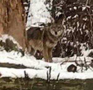 Thank you so much for your report and great picture - perhaps one of our readers will be able to confirm whether this canid is a Wolf, a large Coyote or perhaps a Coyote-Wolf hybrid.